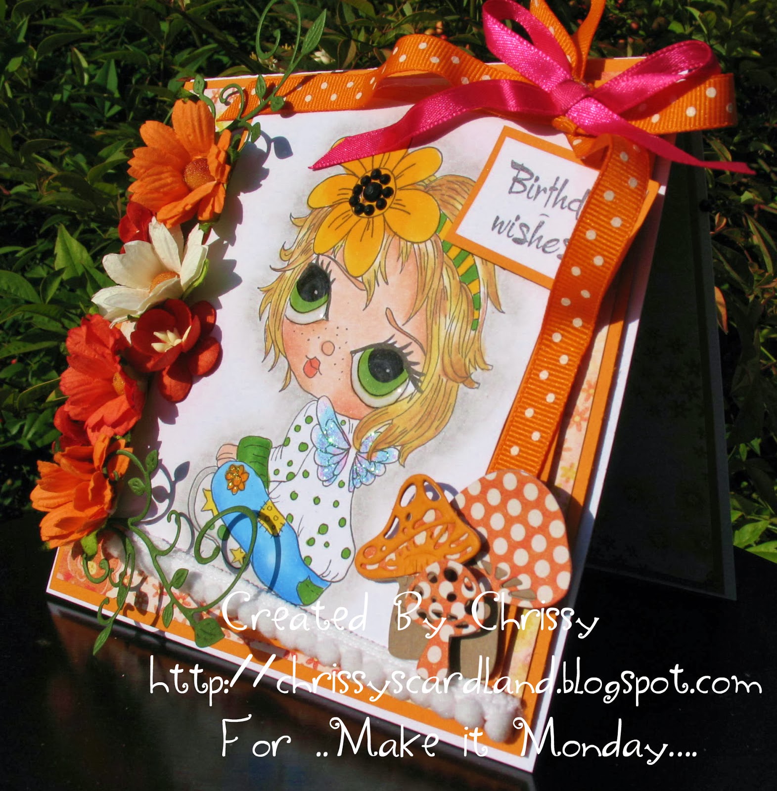 Wow Chrissy this is a wonderful card love the image so cute. Glad you had a nice weekend, the weather has been awful again here in the UK very wet and dismal, I stayed in and made some soap and made a couple of cards for my DT spots. Love Alison xx