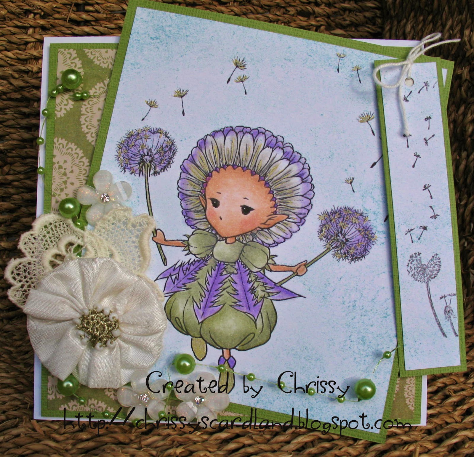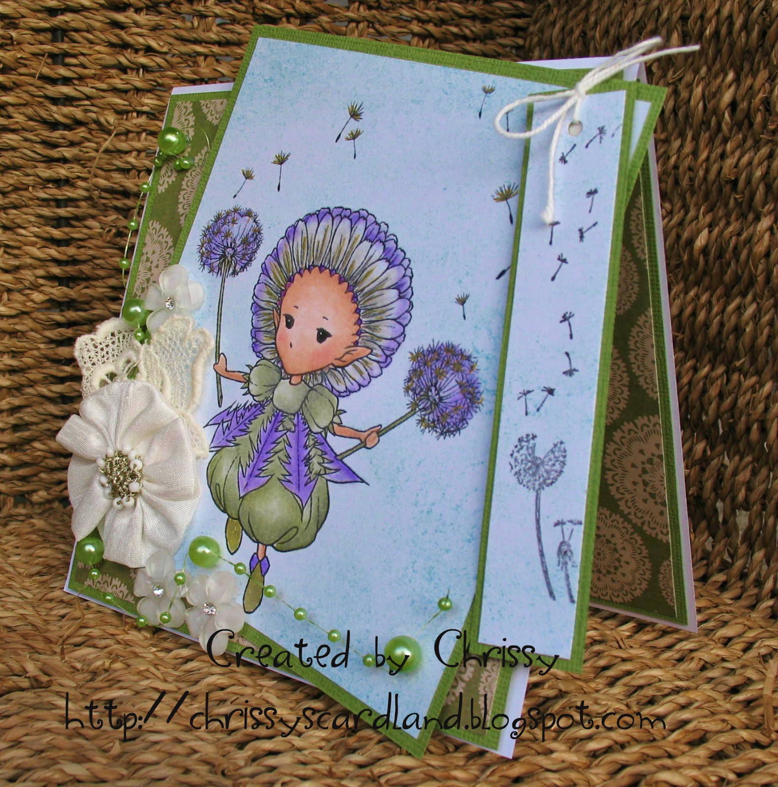 Gorgeous card Chrissy, I have this image and think I purchased it ages ago..it's called dandelion sprites I think...gorgeous..xxx